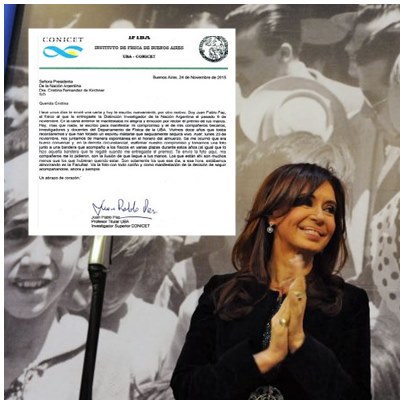 Nacionales | La presidenta agradeció esta con "emoción" el mensaje de apoyo de científicos del Conicet, quienes a través de una carta enviada por un físico argentino distinguido, manifestaron su "compromiso" ante los logros del gobierno.