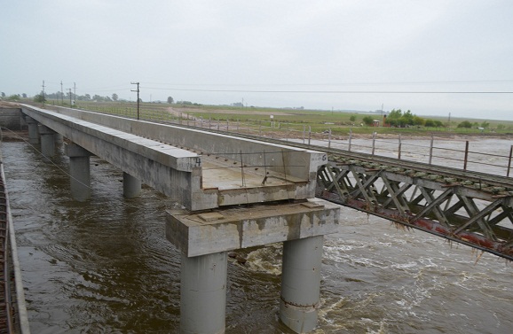 Nacionales | La Operadora Ferroviaria de Nuevos Ferrocarriles Argentinos informa que la grave situación hídrica que sigue afectando la cuenca del Río Salado impide avanzar en las obras de construcción del puente ferroviario que el Gobierno Nacional levanta sobre ese cauce, que tiene un avance en su ejecución del 65%, y que permitirá que el servicio de trenes vuelva a Mar del Plata.