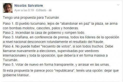 Nacionales | Nicolás Salvatore, asesor económico, del candidato opositor, José Cano, escribió un propuesta de 5 pasos para impedir la victoria de José Manzur en la provincia de Tucumán.