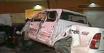 Una camioneta robada con la que huían anoche tres delincuentes de una persecución policial chocó cuatro automóviles en el barrio porteño de San Cristóbal.