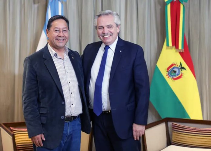 Nacionales | El Presidente se reunió con su par boliviano en Colombia, en la previa de la ceremonia de asunción de Gustavo Petro. Ambos mandatarios ratificaron los acuerdos de provisión de gas para Argentina y destacaron el trabajo conjunto con Chile en el "Triángulo del Litio", como zona fundamental de desarrollo de la actividad económica y científica.