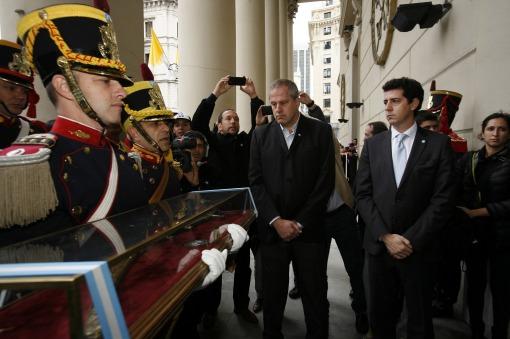 El secretario general de la Presidencia, Eduardo "Wado" de Pedro, sostuvo hoy que "el mejor homenaje que recibió hoy el Libertador es la multitud que salió a la calle a acompañar el desfile que trasladó su sable hasta el Museo Histórico".