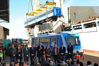 Nacionales | El ministro del Interior y Transporte, Florencio Randazzo, visitó hoy la Dársena E del puerto de Buenos Aires donde recibió 52 coches 0km para la Línea Roca y mantuvo una teleconferencia con la presidenta Cristina Fernández de Kirchner.