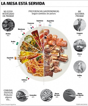 A la hora de elegir el plato del día, prefieren evitar las excentricidades culinarias y valoran su comida tradicional, en especial las carnes a la parrilla. Además, cuando salen a comer afuera, la mayoría elige pagar en partes iguales.
