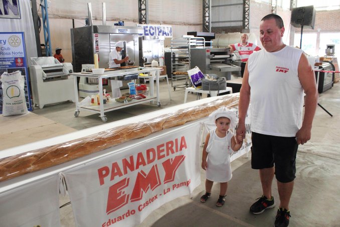 El pan más grande de la Argentina, de seis metros de largo, 20 centímetros de ancho y 20 kilos de peso fue elaborado en la localidad pampeana de Eduardo Castex durante el transcurso de la Fiesta Nacional del Trigo y el Pan.