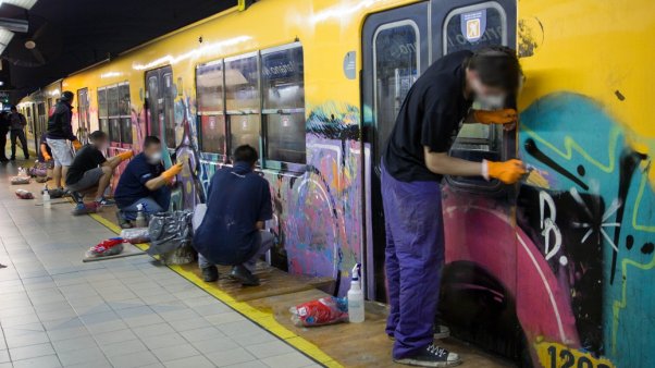 Subterráneos de Buenos Aires informó que cinco jóvenes responsables de vandalismo realizaron tareas de limpieza profunda en formaciones de la Línea C durante el fin de semana.