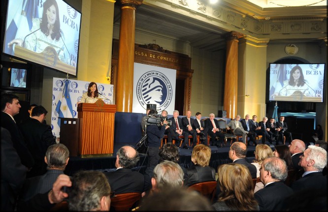 Nacionales | La Presidenta encabezó un nuevo aniversario de la Bolsa de Comercio. Resaltó la ley de pago soberano y, en ese marco, afirmó que "el Gobierno está dispuesto a escuchar nuevas ideas" para pagarles a los bonistas.