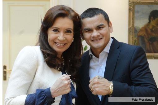Nacionales | La Presidenta la titular de la Fundación "María de los Ángeles", que creó para combatir la Trata de Personas luego que su hija, Marita Verón, desapareciera víctima de ese delito, y también con el boxeador.
