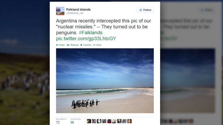 La Presidente aseguró ayer que el archipiélago "constituye la mayor base militar de la OTAN sobre el Atlántico sur". Por Twitter, un grupo de isleños puso una foto de pingüinos con la leyenda "nuestros misiles nucleares"