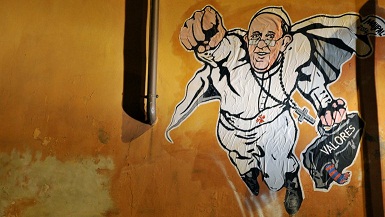 Nacionales | Este jueves apareció pintada la pared romana en la que habían dibujado a Francisco volando como un superhéroe. El autor del dibujo había dicho que era un homenaje a su "sencillez y humildad"
