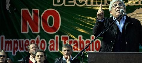 Nacionales | En el acto principal por el paro de Camioneros, el líder sindical elevó fuertes críticas contra el Gobierno por el impacto del Impuesto a las Ganancias en los salarios. Apuntó contra La Cámpora y se mostró irónico sobre los planes "Trabajar"