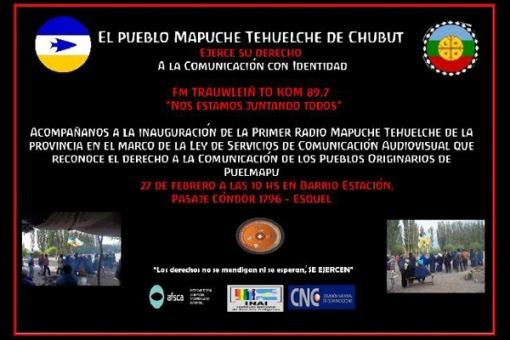 Nacionales | La primera radio Mapuche Tehuelche se inaugurará este miércoles en Esquel, cuya autorización fue otorgada en el marco de la Ley de Servicios de Comunicación Audiovisual.