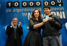 Nacionales | La presidenta Cristina Fernández de Kirchner encabeza el acto de entrega del DNI número 20 millones, durante un acto en el Salón de las Mujeres Argentinas del Bicentenario de la Casa de Gobierno.