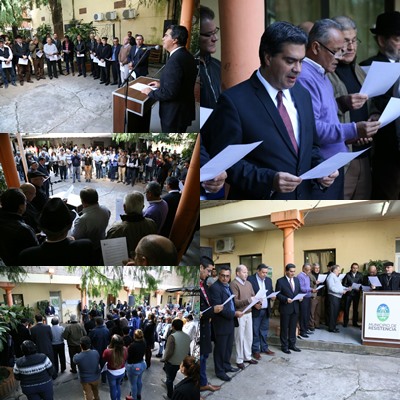 Locales | El intendente Jorge Capitanich participó de la oración interreligiosa por el Día del Trabajador que se celebró cerca del mediodía del viernes en el patio del municipio capitalino. El intendente brindo un cálido y fraternal saludo a todos los trabajadores municipales al celebrarse este 1 de Mayo, un nuevo Día del Trabajador.