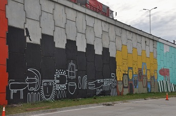 El artista plástico Milo Lockett comenzó a dar las primeras pinceladas del gran mural de 3.200 metros cuadrados ubicado en el viaducto de acceso a la ciudad de Resistencia, sobre ruta Nicolás Avellaneda y avenida Sarmiento.