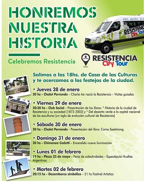 Locales | Los festejos por el 138 Aniversario de la ciudad, que se desarrollarán bajo la consigna “Honremos nuestra historia – Celebremos Resistencia”, se iniciarán este miércoles 27 de enero y se extenderán hasta el 2 de febrero.