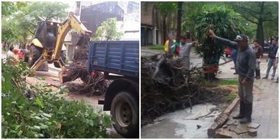 Locales | Tras el fuerte temporal de lluvia y viento que se registró en las últimas horas de anoche y primeras horas del día en Resistencia, personal de la Secretaría de Ambiente y de la Dirección de Paseos y Jardines, desplegó un amplio operativo para retirar los árboles y ramas caídas en diferentes puntos de la ciudad.