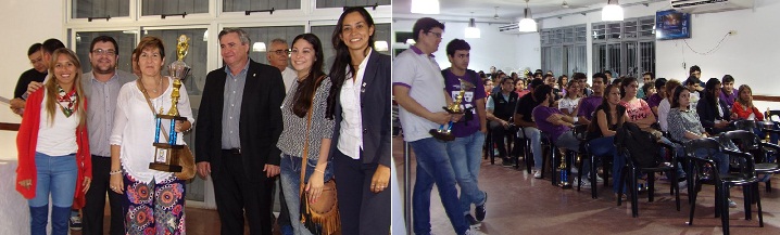 Locales | El acto de premiación, que tuvo lugar en el comedor del Campus Deodoro Roca, convocó a estudiantes y autoridades tanto de las delegaciones deportivas de Corrientes como de Resistencia. El vicerrector, Elvio Ríos destacó la importancia del deporte en la salud de los estudiantes y redobló la apuesta de la Institución por continuar con la línea de acción que se lleva a cabo desde la Subsecretaría de Asuntos Sociales.
