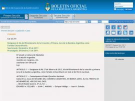 Nacionales | Cristina Fernández promulgó la ley aprobada por el Congreso el 30 de noviembre, que establece como "feriado extraordinario" el 27 de febrero, en conmemoración del día del Bicentenario de la creación y primera jura de la bandera argentina.