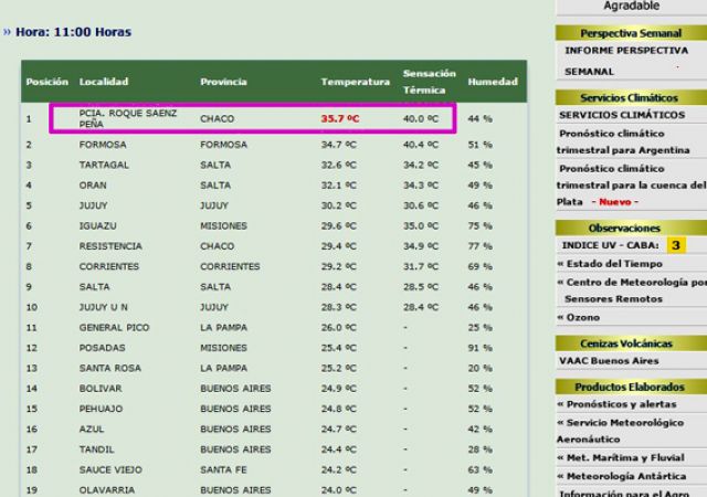 Varias ciudades de la provincia del Chaco marcaron hoy una temperatura máxima de 38 y 39 grados. Aunque en el caso de Sáenz Peña, la sensación térmica alcanzó los 40º.