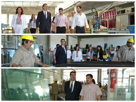 Locales | El gobernador Jorge Capitanich recorrió este viernes en Resistencia una planta de producción de vidrio templado que recientemente incorporó trabajadores, maquinaria y nuevas tecnologías en lo que se traduce en un nuevo paso al frente de la industrialización en el Chaco.