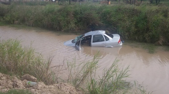 Locales | Un Chevrolet Corsa con dos hombres a bordo se descontroló en plena ruta y fue a parar a un zanjón, quedando semi sumergido. Uno de los ocupantes fue rescatado por los bomberos.