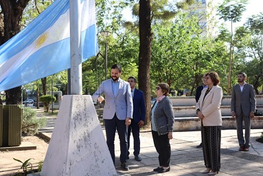 Locales | La Plaza 12 de Octubre fue el escenario donde Resistencia conmemoró el Día de la Diversidad Cultural. Con la presencia de autoridades municipales y de la Comisión de Fiestas Patrias, además de alumnos y alumnas de establecimientos escolares, se honró esta fecha con la entonación de la canción Aurora y las estrofas del Himno Nacional Argentino, a cargo de la Banda Municipal de Música “Luis Omobono Gusberti”.