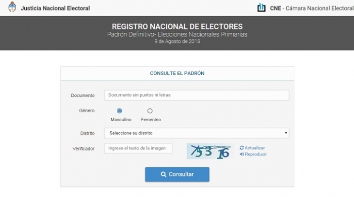 Locales | Los ciudadanos pueden conocer en qué establecimiento deberán sufragar el domingo ingresando a las páginas www.padron.gov.ar o a www.electoral.gov.ar.