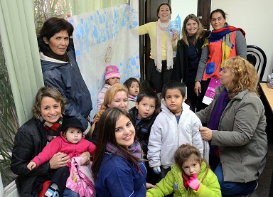 Locales | Desafiando a las bajas temperaturas, niñas y niños de instituciones de Desarrollo Social llegaron hasta la sede central del Ministerio para entregar obsequios alusivos al Día de la Bandera y compartir comidas típicas de invierno.
