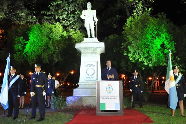 En la plaza 25 de Mayo de Resistencia, el gobernador Jorge Capitanich participó en la noche del jueves, junto a la Fundación Ciudad Limpia y la Fundación Resistencianos, del acto de reposición del sable del monumento al General Antonio Dónovan, ex gobernador del Territorio Nacional del Chaco durante dos períodos consecutivos (desde 1887 hasta 1893).
