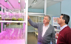 Locales | El gobernador Jorge Capitanich recorrió en la mañana de este domingo, las instalaciones del Centro de Biotecnología Agroforestal, donde se desarrollan plantas transgénicas, ornamentales, y cultivos industriales que apuntan a potenciar el desarrollo productivo chaqueño. El organismo, inaugurado en octubre del año pasado por la Presidenta Cristina Fernández de Kirchner, avanza en acciones y trabajos para cumplir con la meta de alcanzar la producción de entre 3 y 5 millones de plantines al año.