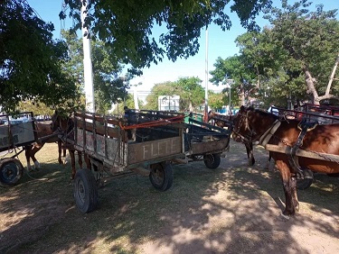 Locales | Desde las 8 de esta mañana un grupo de doce carreros se encuentra en el parterre de avenida Las Heras esquina con 9 de Julio para manifestarse por comida para sus animales. Permanecerán allí hasta obtener respuestas o, de lo contrario, se movilizarán al edificio municipal.