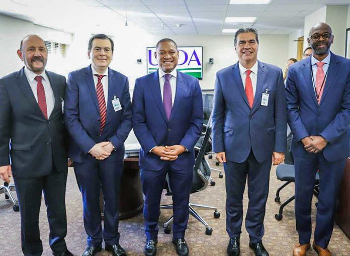 Locales | El gobernador Jorge Capitanich, se reunió en el Departamento de Agricultura de los Estados Unidos (USDA) con el titular del Comité Consultivo Internacional del Algodón, Patrick Packnett y el administrador del Servicio Agrícola Exterior, Daniel Whitley en el marco de la misión internacional que lleva adelante junto a gobernadores del Norte Grande. Calificó como positivo el encuentro y señaló como clave el rol del país norteamericano.