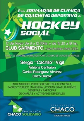 Locales | La Fundación Chaco Solidario invita a las Primera Jornada de Coaching Deportivo de Hockey Social, que se realizará el domingo 17 de mayo -a las 19- en la sede del Club Sarmiento (Juan Domingo Perón 1515).