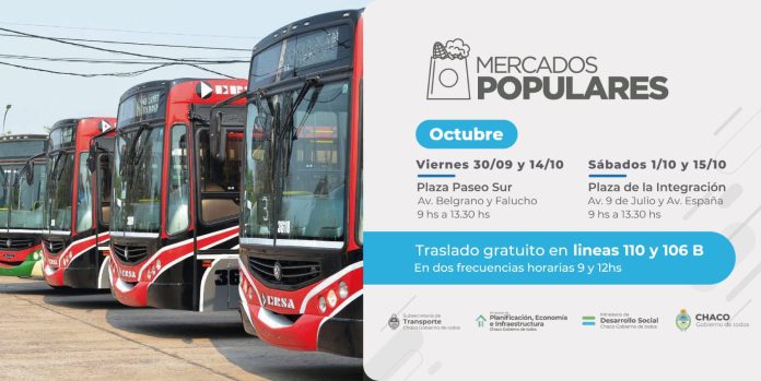 Locales | El beneficio se implementa en las líneas 106 B y 110, cuyas unidades se identificarán con el cartel "Mercados Populares". De esta manera se garantiza el transporte gratuito a quienes deseen concurrir a los mercados que se desarrollarán próximamente en las plazas Paseo Sur y de la Integración.