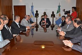 Locales | El gobernador Jorge Capitanich recibió este jueves al intendente de Santa Sylvina Gustavo Steven e integrantes de la cooperativa Casal, para analizar los diversos temas de interés para la comunidad local y acordar trabajo en conjunto. Estuvieron presentes también los subsecretarios Fabián Moran (Asuntos Municipales) y Gustavo Ferrer (Industria). En la oportunidad se planteó el traslado de la planta desmotadora al predio adquirido y cuyas deudas se regularizaron a través de gestiones del gobernador Jorge Capitanich con el Banco Nación y el Nuevo Banco del Chaco.