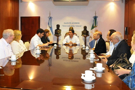 El gobernador, Jorge Milton Capitanich recibió hoy en el Salón de Acuerdos a integrantes de la Asociación Italiana de Resistencia, con quien habló de diversos temas,