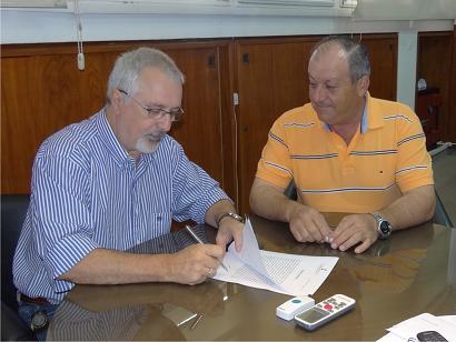 Locales | El Presidente del Instituto de Seguridad Social Seguros y Préstamos, contador, José Valentín Benítez; firmo un convenio junto al Intendente de la Municipalidad de La Clotilde, Victor Gasko, en el cual dicha localidad se adhiere al Régimen de Presentación de Declaraciones Juradas mediante la transferencia electrónica de datos