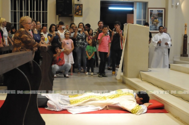 Locales | Marcelo Andrés Reynoso, un joven de la localidad de General San Martín fue ordenado como sacerdote durante la Santa Misa que celebró el arzobispo Ramón Dus ayer en la parroquia Nuestra Señora de Itatí, ubicada en Andreani 302 de Resistencia