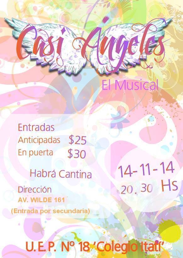 Locales | El próximo viernes 14 de Noviembre a las 20:30 horas subirá a escena la obra Casi Ángeles en el salón de actos del Colegio Ntra. Sra. de Itatí, Av. Wilde 161.