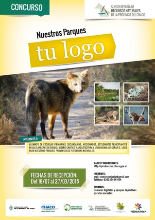 Locales | El Ministerio de Producción, a través de la Subsecretaría de Recursos Naturales, prorrogó hasta el 27 de marzo del 2015 la fecha de cierre de recepción de trabajos del concurso “Nuestros Parques, tu logo”, con la finalidad de permitir la participación de todos los sectores convocados. Las paginas para la inscripción se encuentran en la página del Ministerio de Producción: http://mpchaco.com.ar/subsecretaria-de-recursos-naturales/concurso-nuestros-parques-tu-logo/ y en la cuenta en Facebook “Biodiversidad Chaco”.