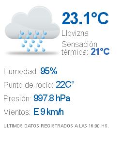 Locales | La temperatura actual es de 33º C y el cielo se encuentra parcialmente nublado. Sensación térmica: 34º C. Humedad: 43%. Vientos del sector Este.