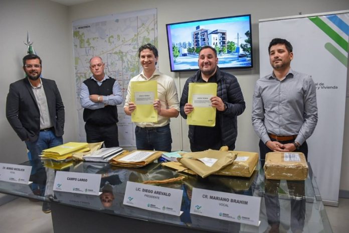 El edificio multifamiliar contará con 19 departamentos, 14 cocheras y espacios verdes, y será ejecutado con fondos propios de la provincia (FoProVi). "Nuestro compromiso es seguir apostando a la concreción de más obras", aseguró el titular del IPDUV, Diego Arévalo; en compañía del ministro de Planificación, Economía e Infraestructura, Santiago Pérez Pons.