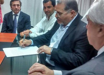 Locales | El intendente Antonio Rodas junto al presidente de Servas S.A, José Aizpun y el Ministro de Industria, Empleo y Trabajo de la provincia, Sebastián Lifton firmaron el convenio habilitante para la apertura de obras en el predio que ocupara la empresa encargada de fabricar insumos tecnológicos.