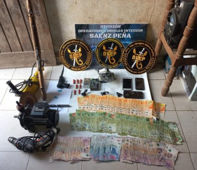 El personal de la División Operaciones Drogas Interior Sáenz Peña llevó a cabo dos órdenes en simultáneos con la colaboración de la División Microtráfico Interior. En ambos domicilios, ubicados en las 40 viviendas, incautaron más de 700 gramos de Cocaína, casi 250.000 pesos en efectivo, balanzas digitales y armas de fuego.