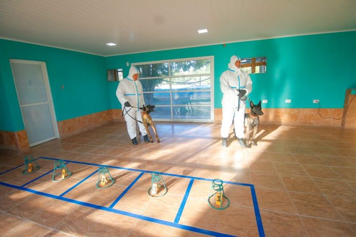 El gobernador participó de la evaluación y certificación de dos perros formados en Odorología Forense en Canes y otros dos en Detección de Restos Humanos. Cada animal es acompañado por un oficial de la Policía también capacitado en la materia.