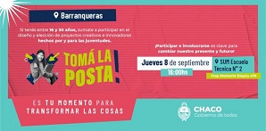 Locales | El encuentro será este jueves en el SUM de la Escuela Técnica N° 2 en Barranqueras. El objetivo es acompañar proyectos impulsados por jóvenes de entre 16 y 30 años, buscando su participación activa en las políticas públicas.