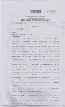 Locales | A continuación se reproduce el facsímil del Oficio N° 2678 dirigido al Jefe de la Comisaría Segunda de Resistencia por parte de Jueza Cortés.