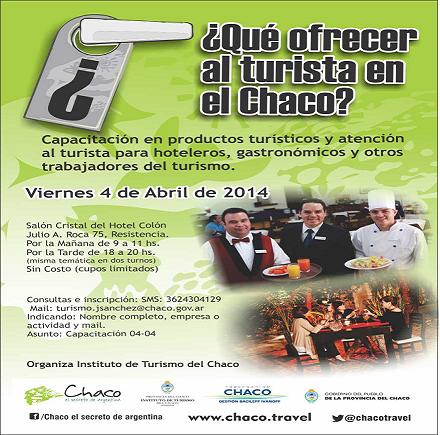 Locales | El próximo viernes cuatro de abril, en el Salón Cristal del Hotel Colón de Resistencia, personal perteneciente al área de Calidad Turística del organismo estatal brindará una capacitación dirigida a trabajadores del sector