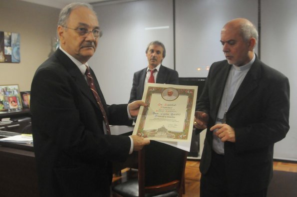 Locales | El gobernador Juan Carlos Bacileff Ivanoff recibió de manos del arzobispo de la Arquidiócesis de Resistencia, monseñor Ramón Dus la bendición apostólica enviada por su Santidad el Papa Francisco para el primer mandatario provincial y su familia.
